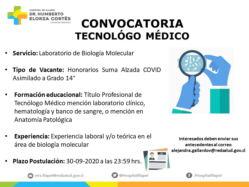 Convocatoria Tecnólogo Médico – Laboratorio Biología Molecular