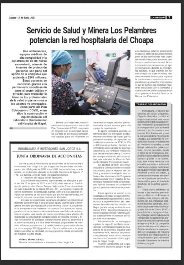 Servicio de Salud y Minera Los Pelambres potencian la red hospitalaria del Choapa – Diario La Región 13 junio