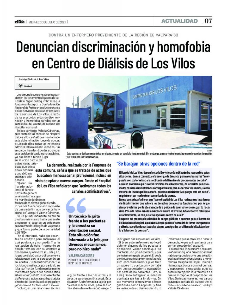 Discriminación homofobia CD Los Vilos – Diario El Día- 30 jul