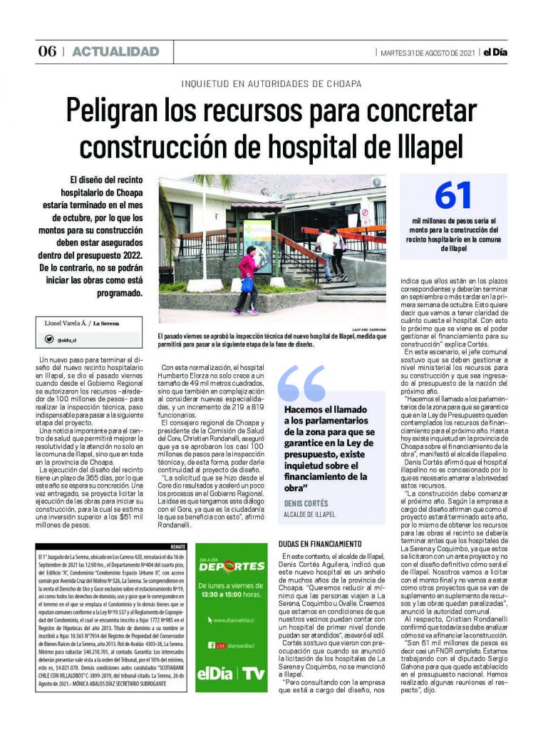 Peligran recursos para concretar construcción del Hospital de Illapel – Diario El Día 31 Agosto 2021
