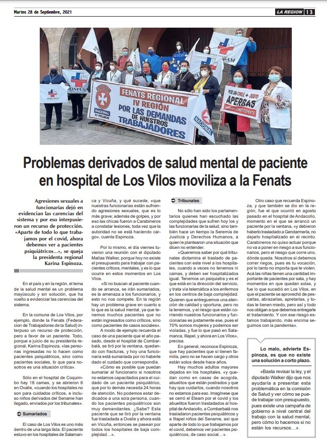 Problemas Salud Mental HLV – Diario La Región- 28 sep