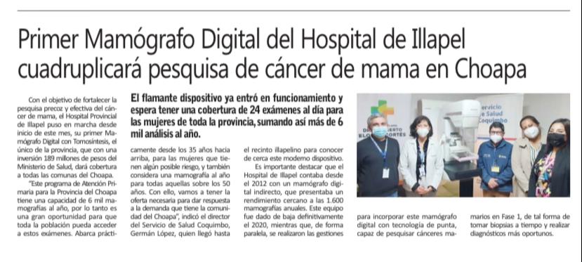 H. Illapel Mamógrafo – Semanario Tiempo – 13 mayo 2022